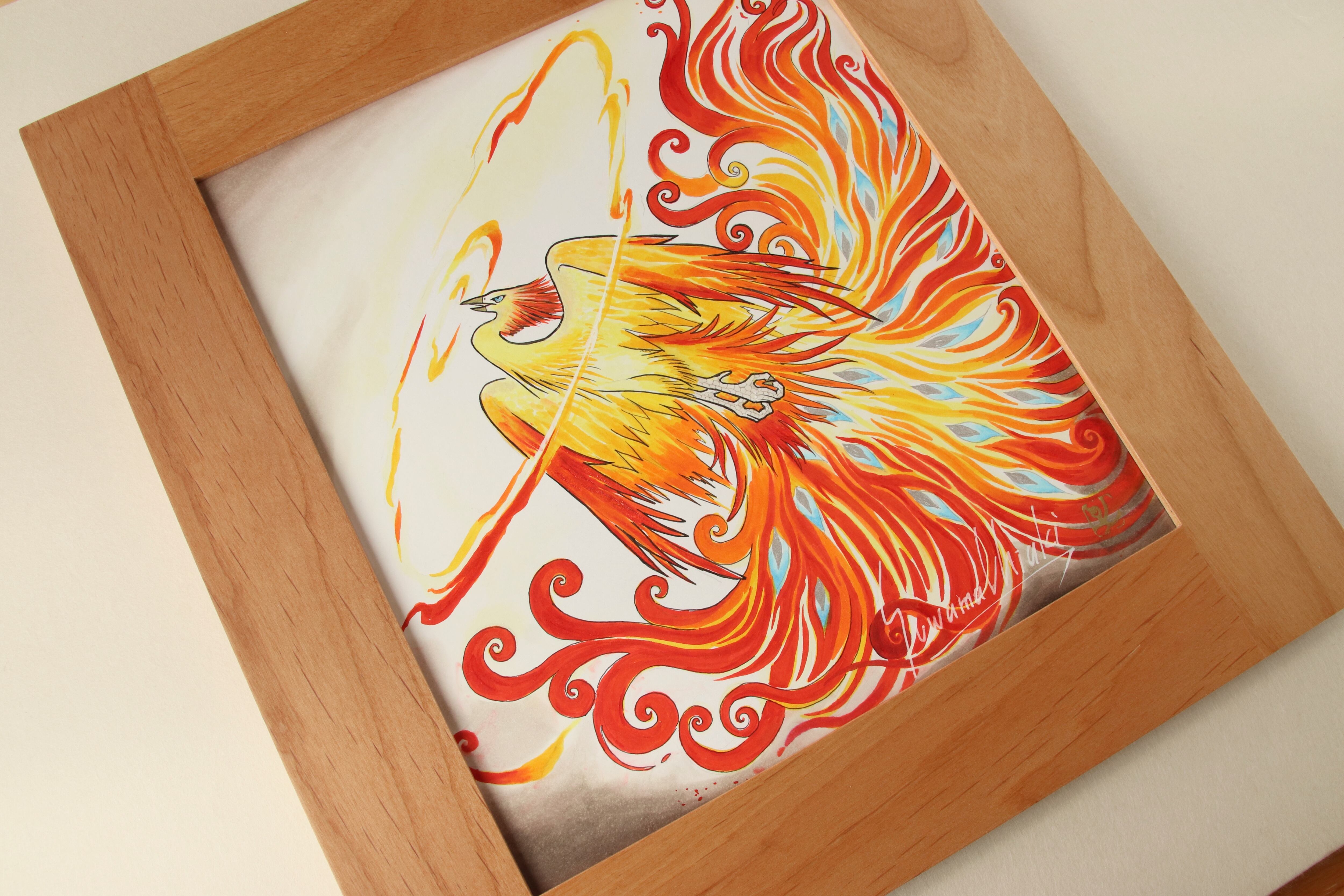 コピックマーカーによる朱雀のオリジナルイラスト原画色紙です。